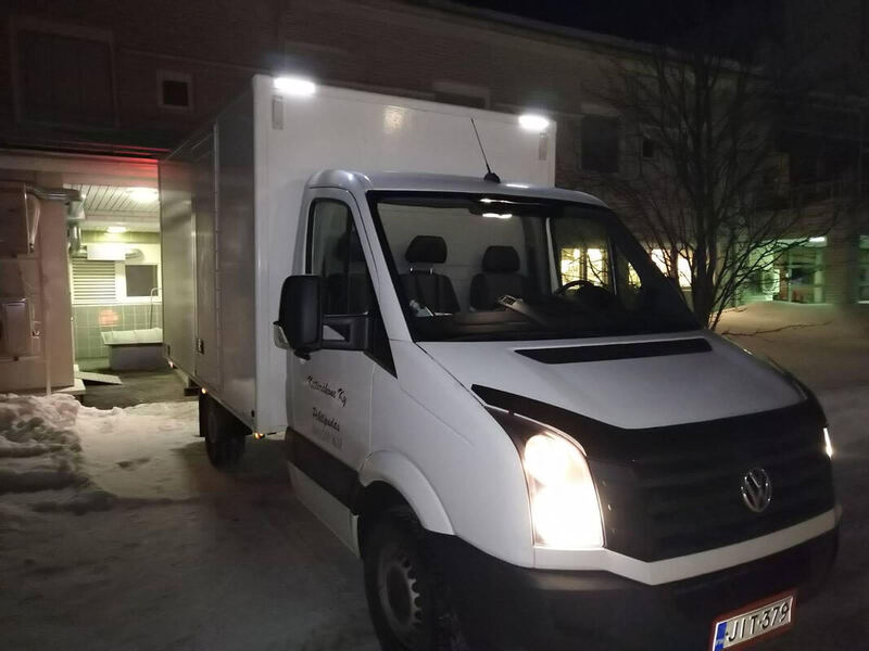 Volkswagen Crafter umpikaappi pakettiauto perälautanostimella.